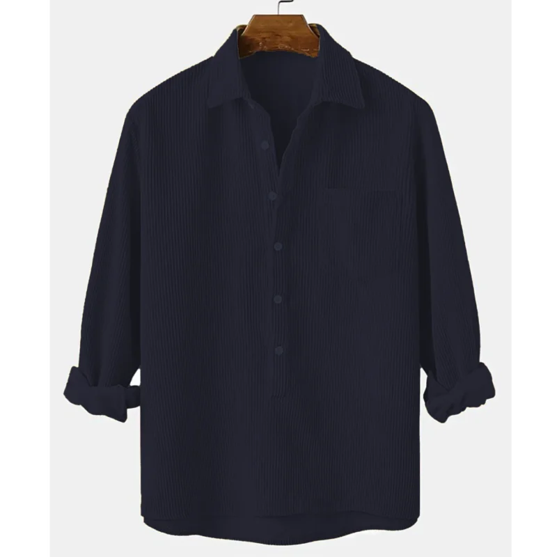 Cord Bluwish Black Half Button Shirt