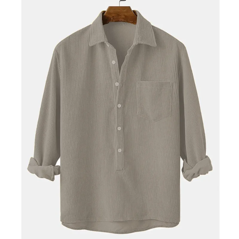 Cord Dark Khaki Half Button Shirt